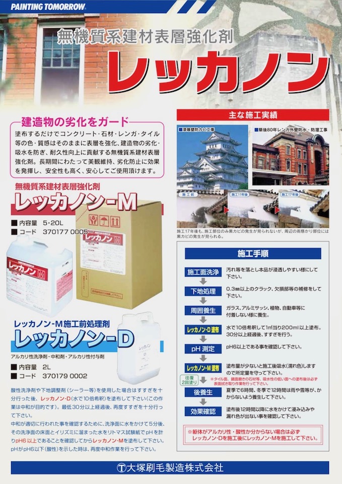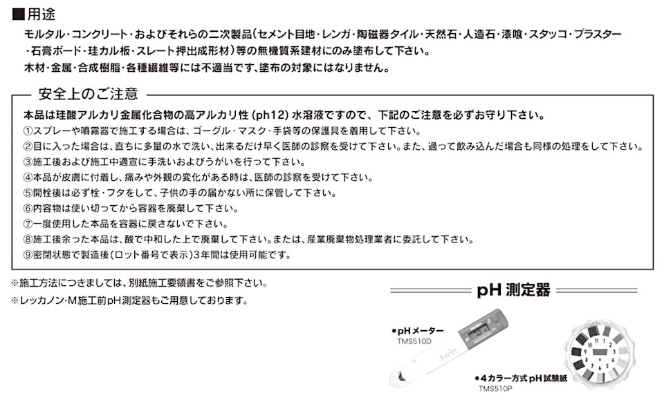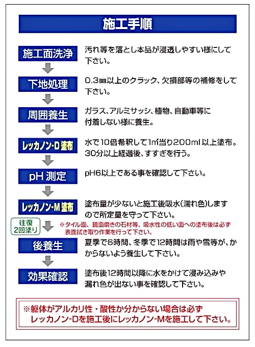 ※躯体がアルカリ性・酸性の判別がつかない場合、必ずレッカノンD(別売り)施工後に塗布して下さい。